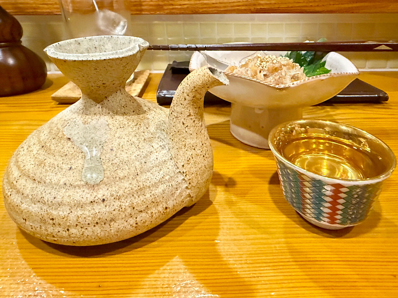今日はカラフルで内側が金ピカなぐい呑みにしてみました。