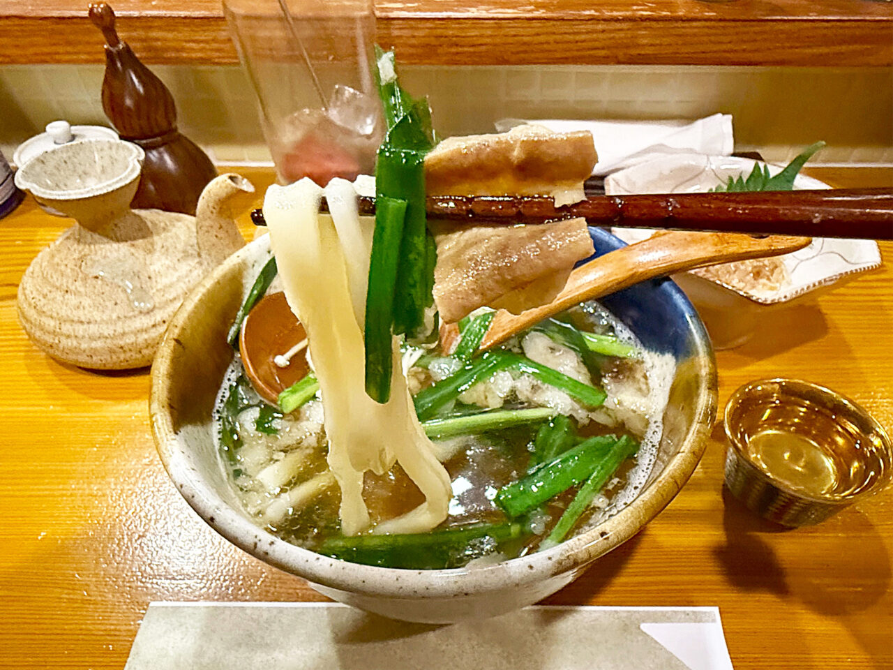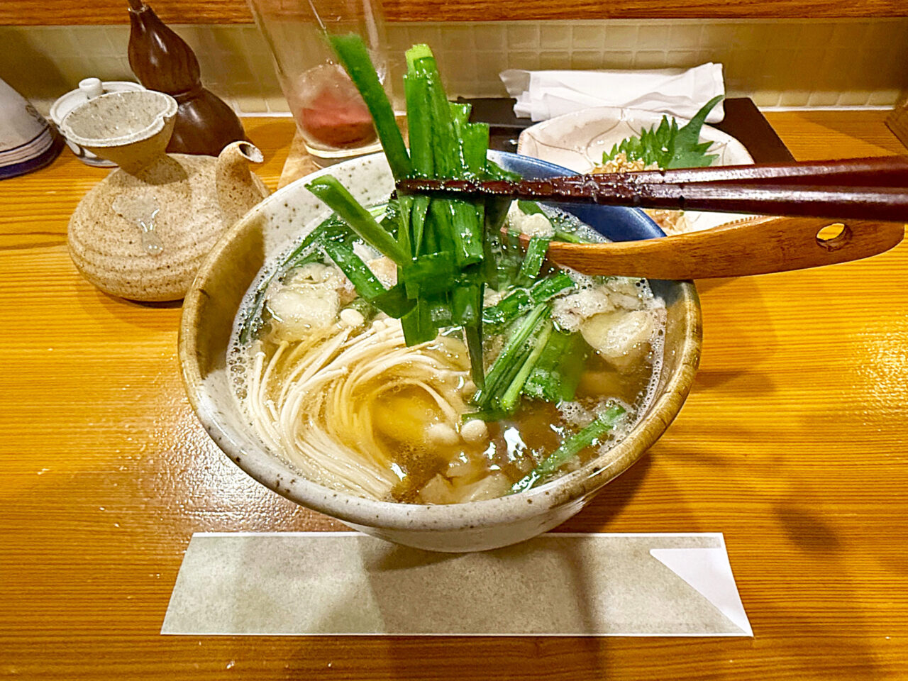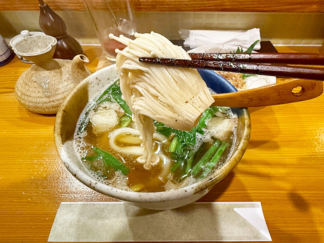 「油かす」やエノキやニラの旨味もお出汁に溶け込んでいて至福の旨さです。