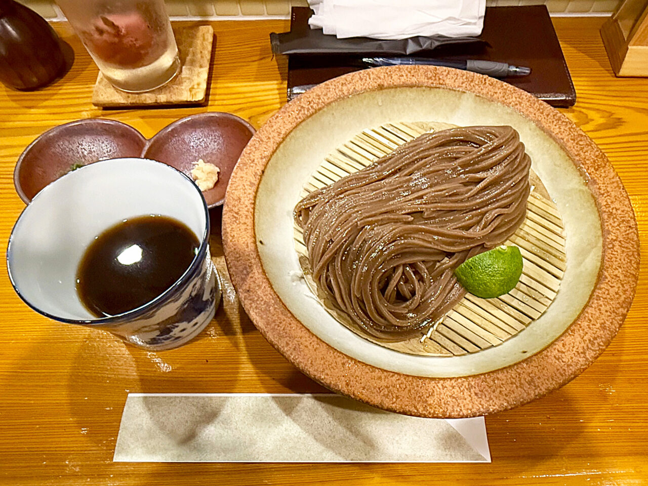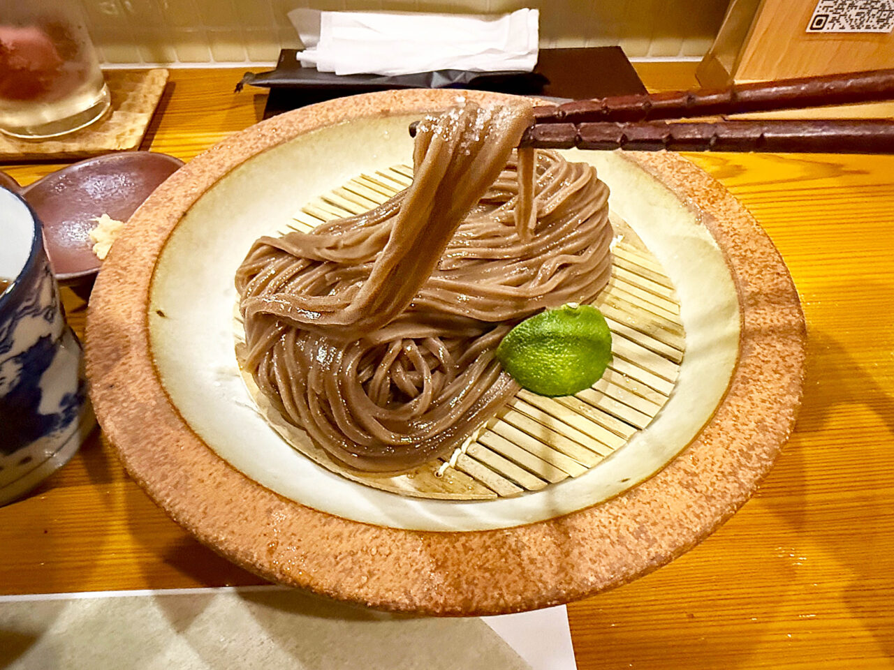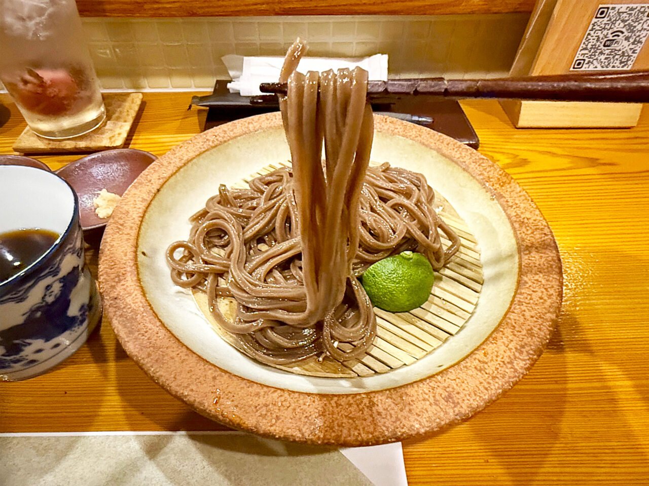 ラーメンの「つけ麺」では良く有りますが、「日本蕎麦」や「うどん」だと、「ぶっかけ」や「かけ」の「すだちうどん」や「すだち蕎麦」は有ってもザルではあまり見掛けない気がします。