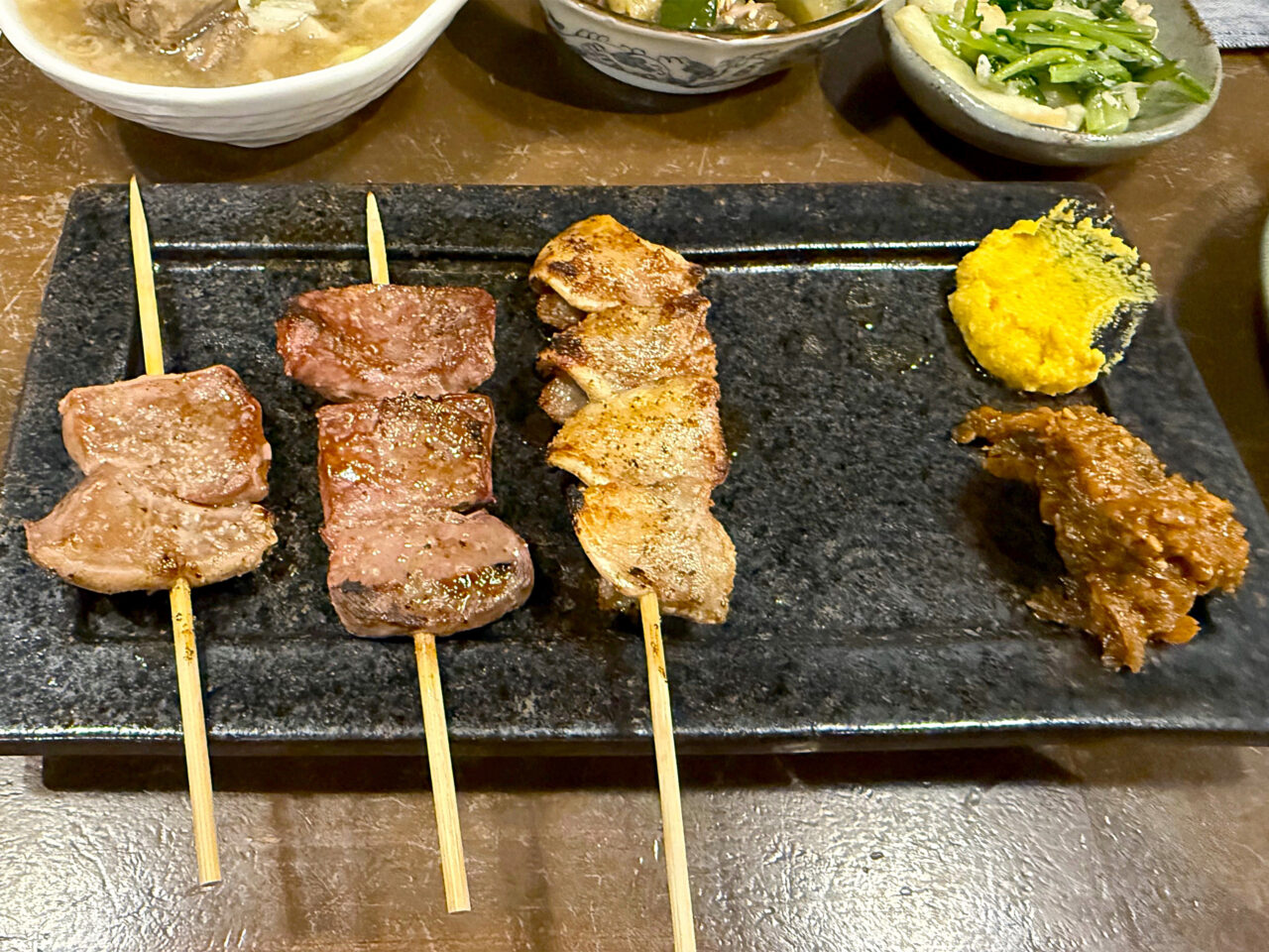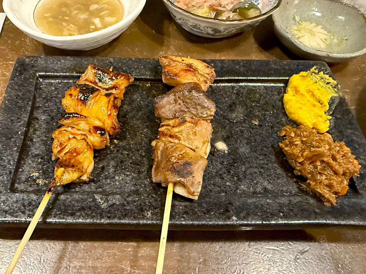 「おまかせ5本盛り」の「カシラ」と「ハツ」。