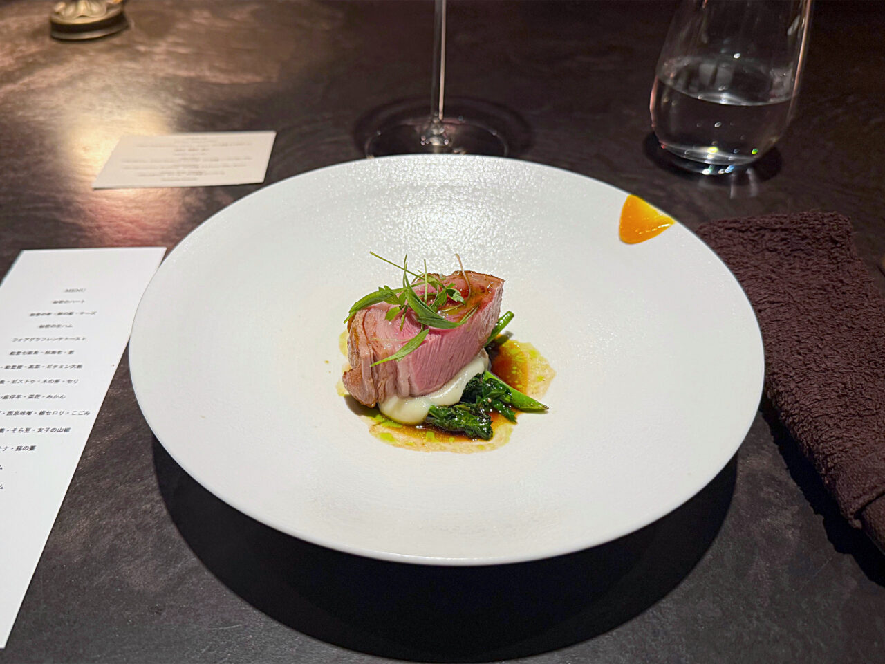 「世界一軽い食感のフォアグラ」と言う藪中シェフの説明が分かる、雪の様に口の中で溶ける感じです。