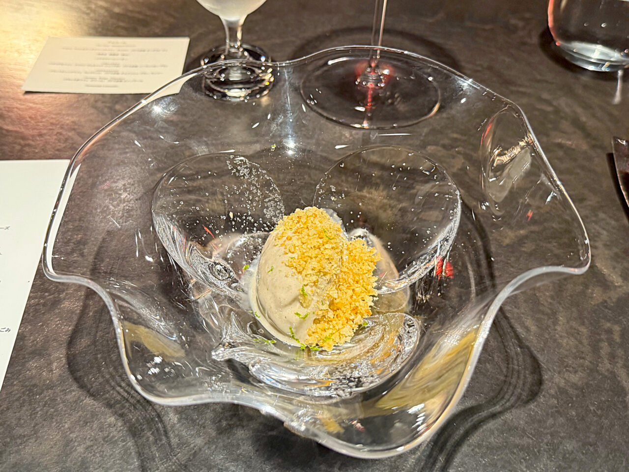 フォアグラも色々な料理を見て来ましたが、流石に液体窒素凍らせて、グレーターですりおろしたのは初めて見ました。