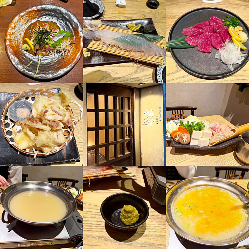 胡麻鯖、烏賊の姿造り、馬刺し、鶏の水炊きと、ベタなメニューをいただきました。