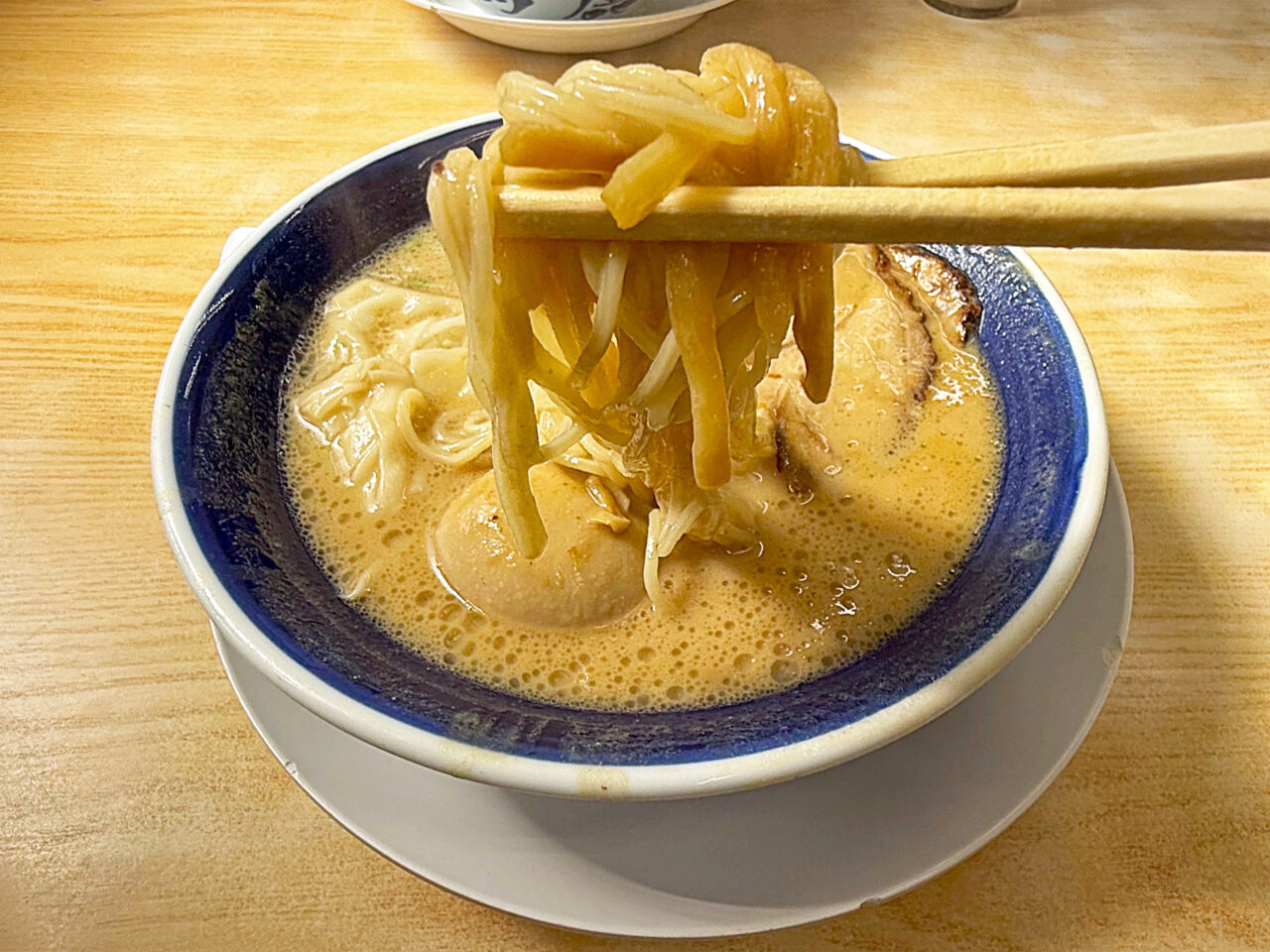 これ程ホネ感を感じるスープは大和の「うまいヨゆうちゃんラーメン」のスープ位ですが、アレよりもホネ感が強いのに滑らかでクリーミーなのは本当に凄いです。