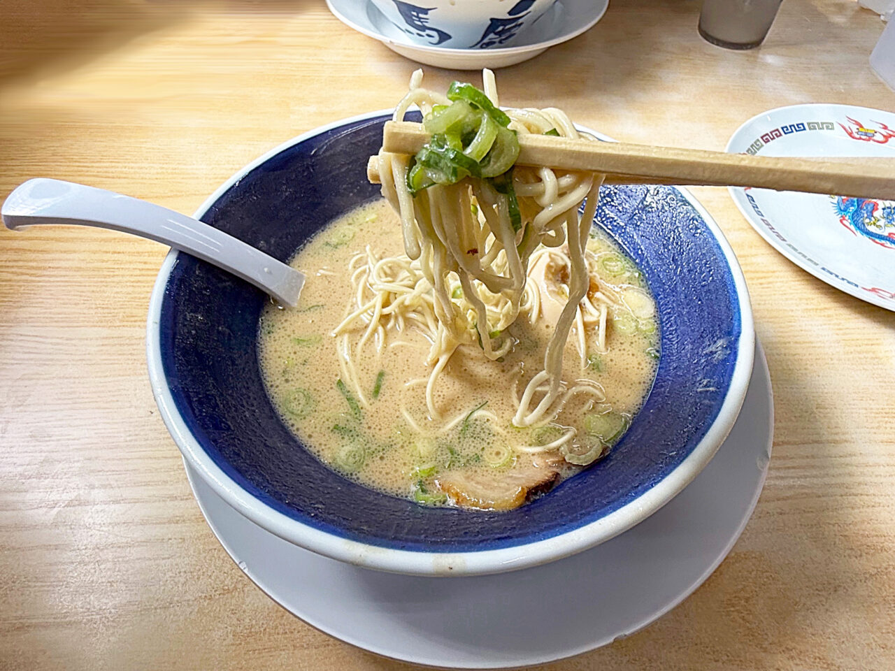 先日伺った「元祖長浜屋」さんもそうでしたが、万能ネギでは無く普通の青ネギです。