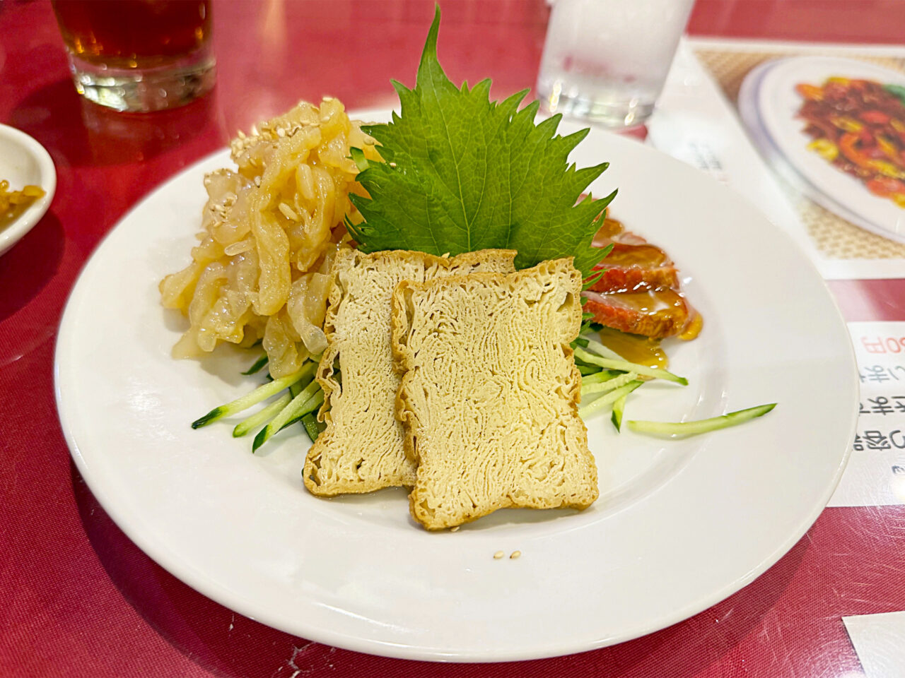 押し豆腐、クラゲの和物、叉焼の「三種の前菜盛合せ」、「ザーサイ」の前菜から始まって、「小海老のチリソース炒め」、「牛肉の黒胡椒炒め」も絶品です。