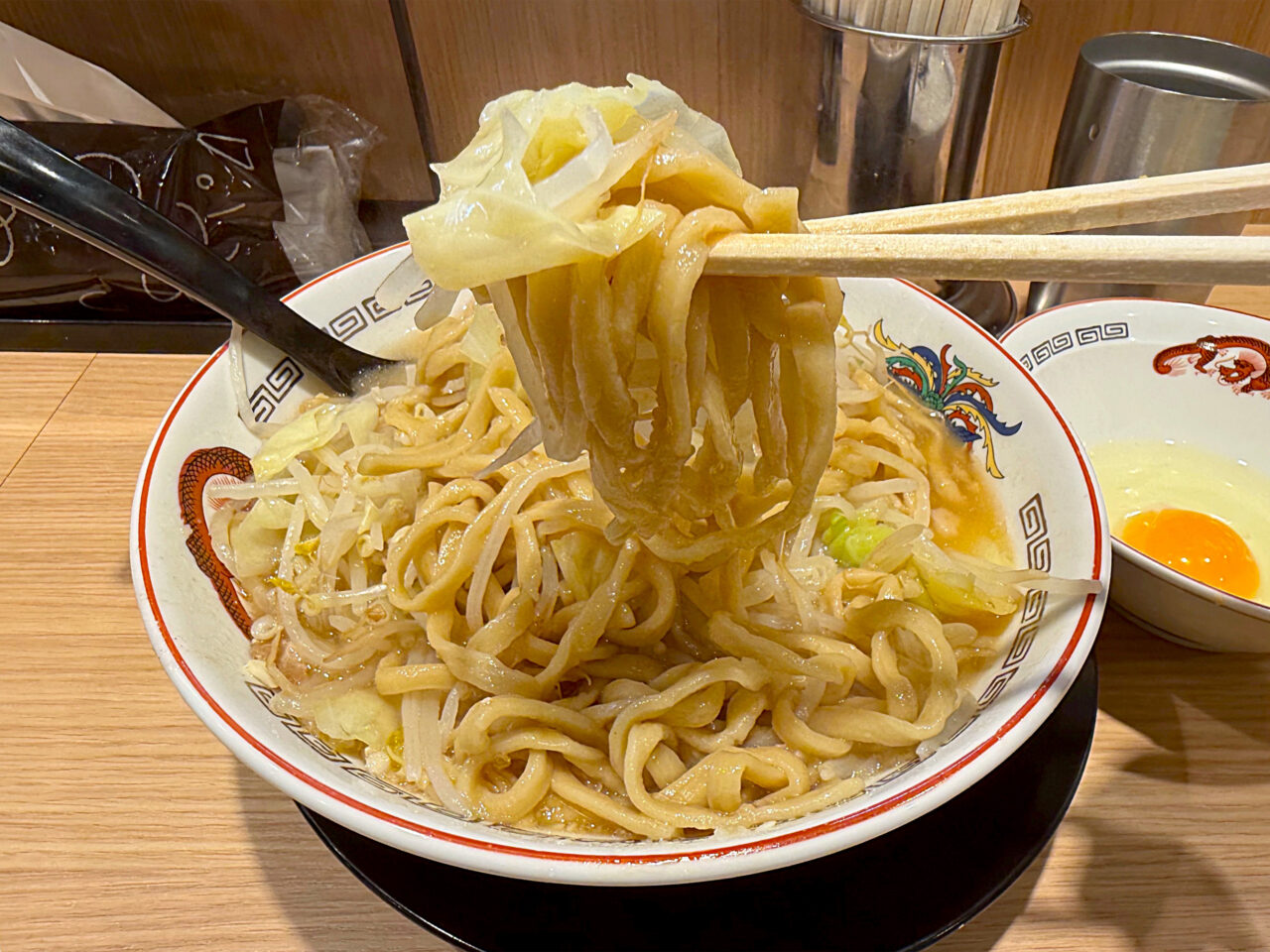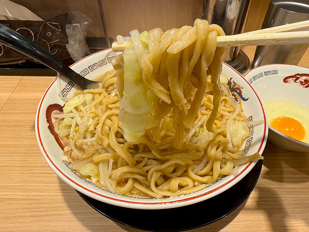 天地返しで味が浸みたヤサイと麺が良い感じに合います。