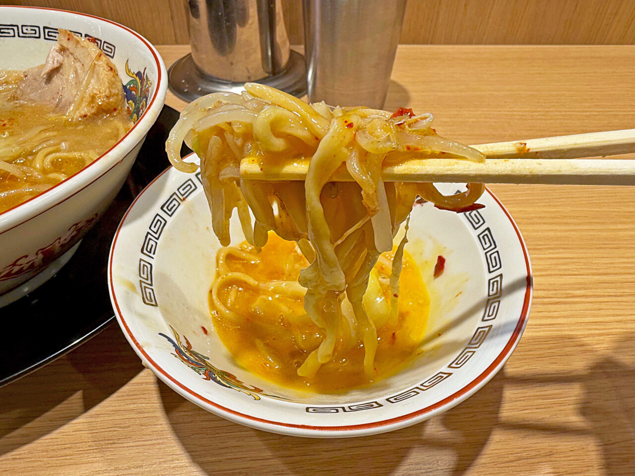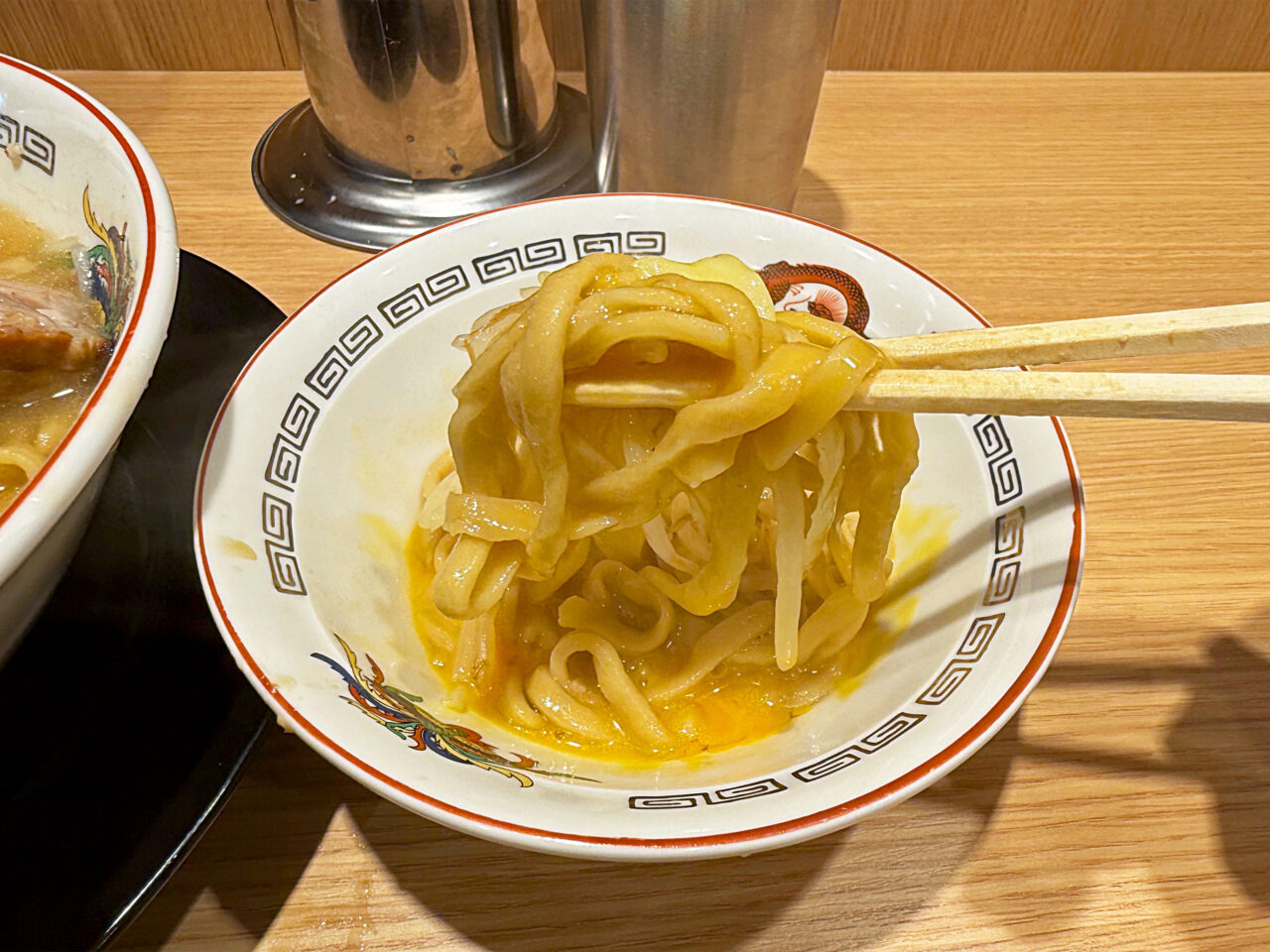 麺の太さや茹で加減もスープに良く合っていて、ややデロな感じがスープにピッタリです。