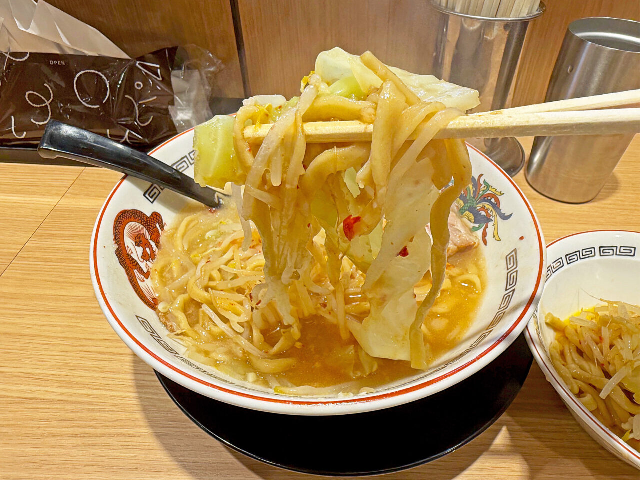 普通、二郎系でラーメンを食べても9割以上モヤシなので、キャベツ多めは貴重です。