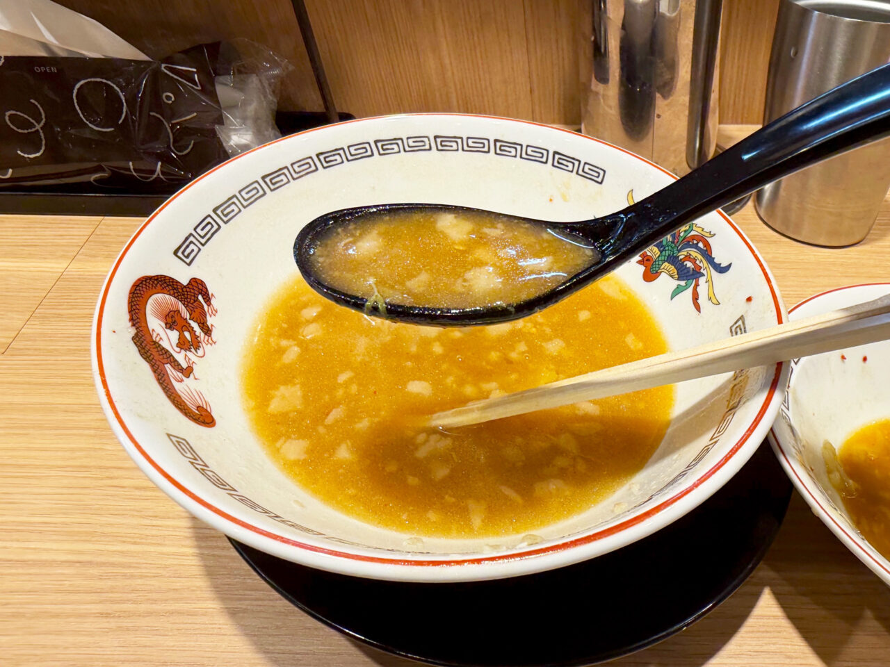 粗挽き一味唐辛子がスープの味をキリッとさせてくれて美味しいです。