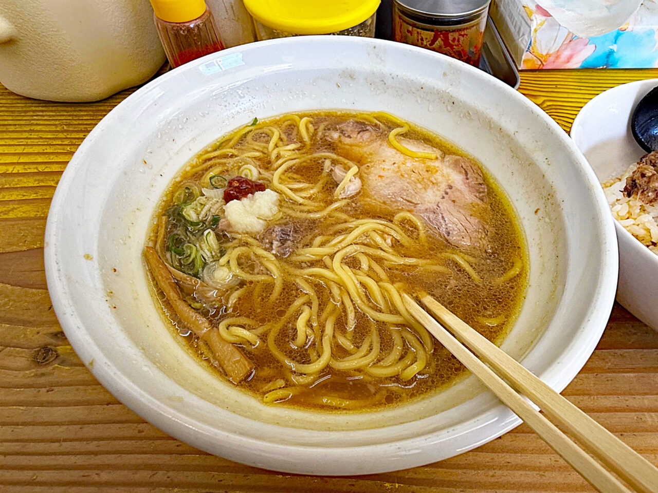 塩味も美味しいですが、やはり醤油味のスープの方が合う気がします。